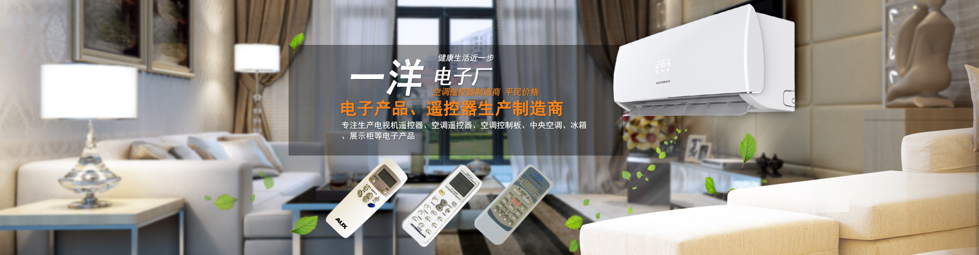 天長(zhǎng)市一洋電子廠天長(zhǎng)市一洋電子廠,公司創(chuàng)建于2000年,目前有員工超過(guò)200人,占地近5000平米的花園式廠房一套, 自動(dòng)化生產(chǎn)流水線數(shù)十條以及裝備的生產(chǎn)設(shè)備和動(dòng)態(tài)檢測(cè)儀器等,總資產(chǎn)近500萬(wàn)元。專(zhuān)業(yè)生產(chǎn)電視機(jī) 遙控器、空調(diào)遙控器、空調(diào)智能控制器,家用吸頂式空調(diào)控制器、電梯空調(diào)智能控制器、冰箱智能控制器、 電熱壁爐控制器等小家電產(chǎn)品,各產(chǎn)品規(guī)格型號(hào)達(dá)幾十個(gè)系列、千余個(gè)品種。目前遙控器年生產(chǎn)量150萬(wàn)只、 控制板年生產(chǎn)量80萬(wàn)套,70%以上產(chǎn)品出口到港臺(tái)、美洲、歐洲、東南亞以及中東等許多國(guó)家... 【查看更多】